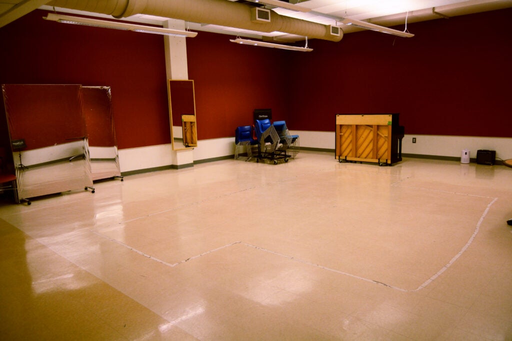 This large rehearsal room is intended for theatre rehearsals, but also works well for large music ensembles. Platt 179 features some furniture including tables, chairs, and music stands, as well as an upright piano. There are also two large portable mirrors housed in this space. 179 is a favorite of our After School Arts at Penn program.